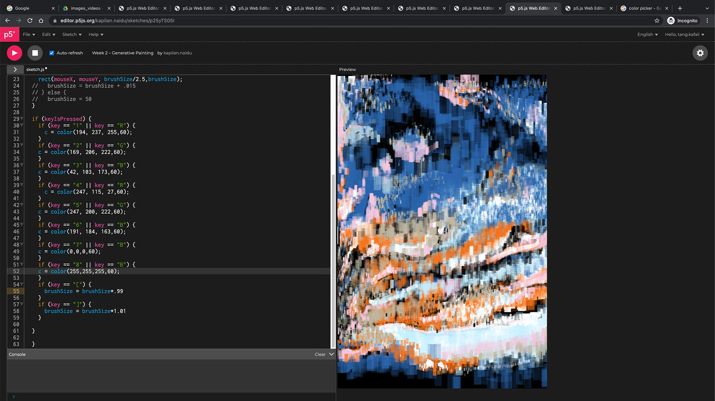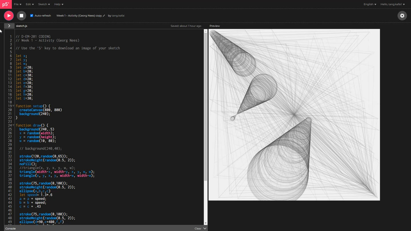 P5js - Language5 weeks of P5js coding interactive visual art.